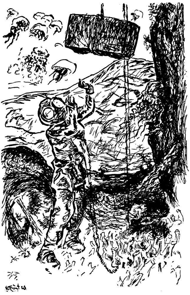 Entsetzt traten die beiden Erdmenschen zurück, aber auch der Uranusbewohner schien erschreckt, und seltsame Laute, wie dumpfe Klarinettentöne, kamen aus seinem Rüsselmunde.