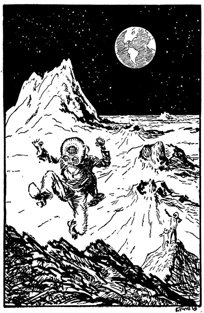 „Ach, du lieber Gott!“ rief der enttäuschte Christian, „dieses Fünkchen, das aussieht, als sei es aus meiner Tabakspfeife geflogen, ist unsere Erde? Nun, ich glaubte wenigstens, unser Haus mit der Sternwarte zu sehen und die Blumenstöcke vor dem Fenster, die nun wohl schon ganz vertrocknet sind! Himmlische Güte, das ist die Erde!“