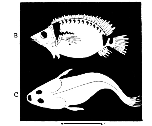 Fig. 3. Paintings of fish on plates. Italo-Greek work of the fourth century B. C. From Morin.