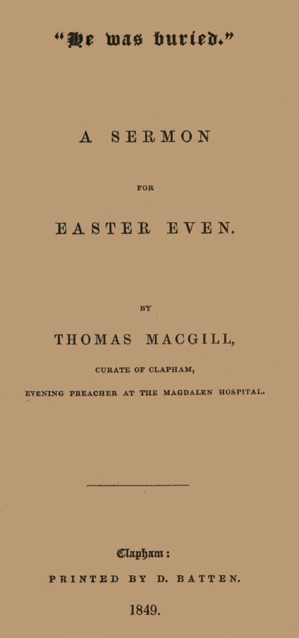 But whatever may be our private griefs, whatever the hopes we cherish of departed friends, let the burial and grave of Christ remind us that we must die, and that after death there is the judgment. It appeals to the thoughtless and the careless and the gay, with a searching enquiry, “When will your spirit be at rest?” when corruption preys upon your body, it asks “are you united to the Saviour? Have your submitted to the righteousness of God, and renounced your own, as a sinner guilty and hell-deserving? Have you fled for refuge to lay hold on the hope set before you on the cross of Christ? Or are you yet dead in trespasses and sins—a captive to Satan—a vessel fitted for destruction?”