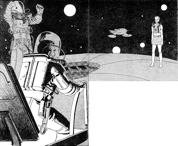 "The rocket," said Dundon slowly, "never came back. It's still up there, floating along a few yards from the station. We can see it clearly. Too clearly, damn it. And the interesting part is this: nobody got out of the rocket. Nobody went into the satellite. The rocket went up and maneuvered itself into orbit alongside the satellite, and there it sits. We haven't been able to contact it by radio either."
