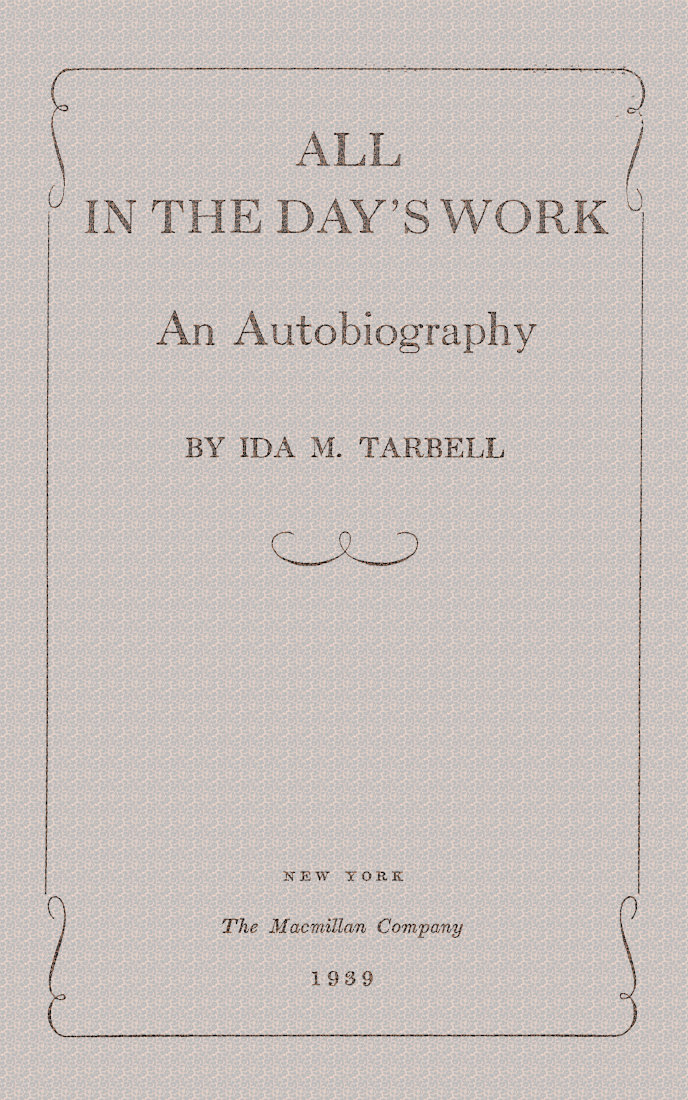 “I don’t know how this book will come out,” Miss Tarbell explained to reporters on her eightieth birthday. “I am putting down the things I have seen, the men and women I have known in five stirring decades. Always there have been exciting things going on, things that upset me—wars, depressions, bloody rows.”