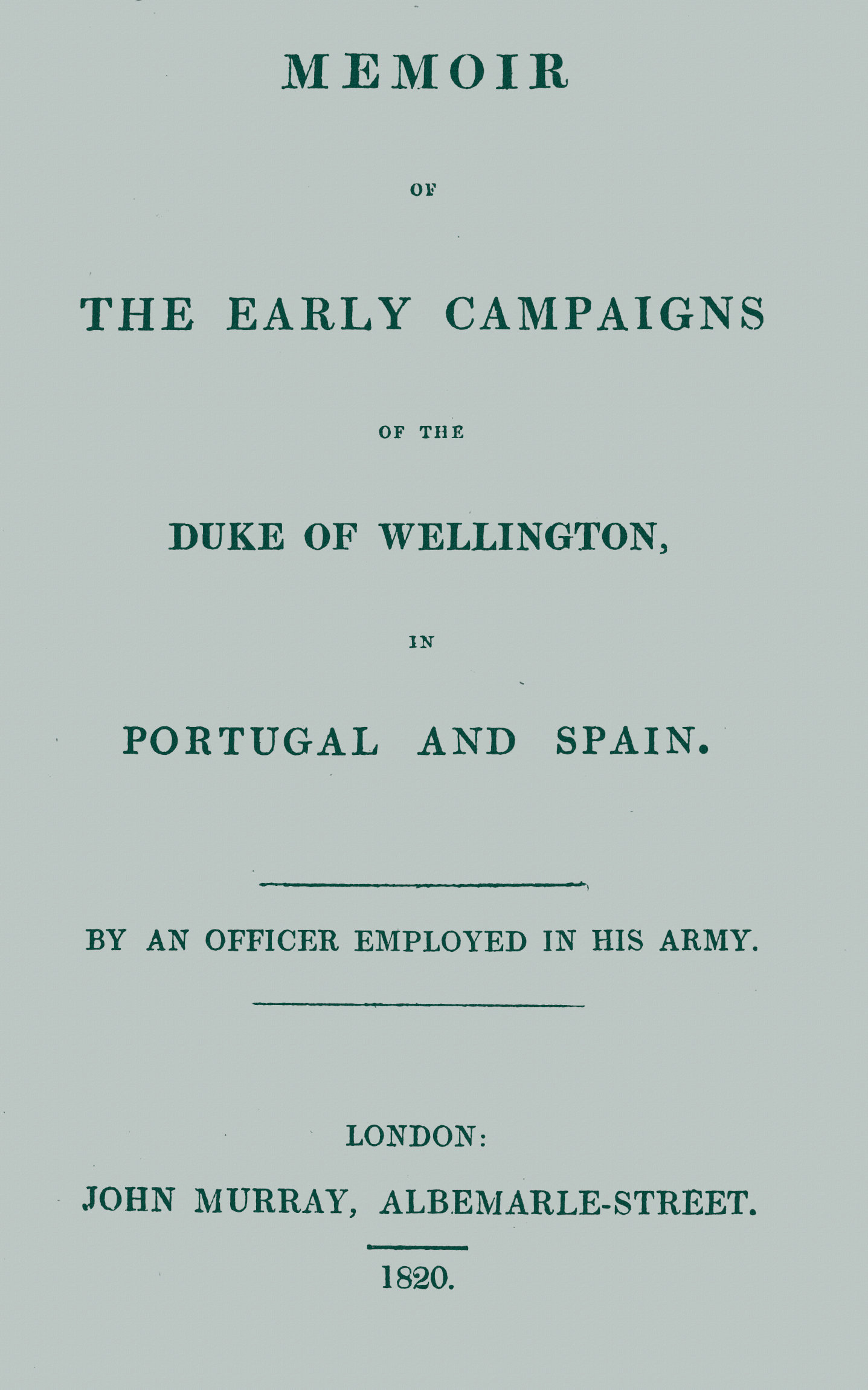 Title: Memoir of the early campaigns of the Duke of Wellington, in Portugal and Spain,