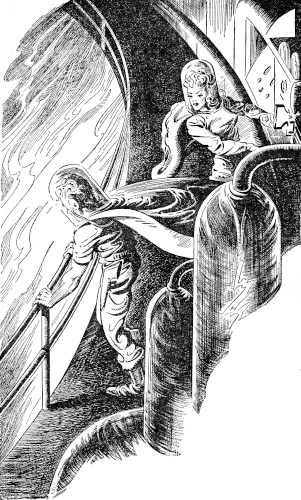 It was almost his undoing. A beam creased his hair. He drew back, then suddenly flung the door wide and fired at the man they had left to guard the stairs. His beam sliced across the Guard's wrist, sent his gun spinning. But the man's scream of pain sent up shrill echoes that would bring the others back. Ketrik bowled the man aside as he leaped for the stairs leading up. At least he'd gained a few minutes!