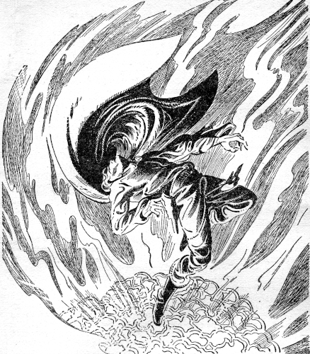 There came a sound, a sighing, which rose to tremendous crescendo as though every wind from the depths of space were sweeping in upon him! An awful vertigo as the dome, the floor, and all space between seemed to tilt crazily—into nothingness! He clung to the lever, sought to push it back. His mind reeled. Everything before him was merging into a grotesquerie of impossible angles and planes—and through it all came a twisting vortex of darkness, utter emptiness, that sought to sweep him out and away!
