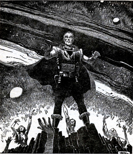 "I have a lot of power," Bronson said. "I'll have more of it. You see, the Plan really did work in a sense. Variables work both ways. Over a period of time, circumstances meshed in such a way that a Disciplinary Corpsman named Bronson got THE CALL. The sight of the planet Mars was the key-in stimulant. I happened to be alone in my apartment so that no one knew I'd been hit. I happened to be a Corpsman which meant I knew what happened to those who got THE CALL. I couldn't accept that, so I had to look for other reasons. I also happened to never have undergone brain surgery, any prefrontal lobotomies, for example. Those things destroy the analytical mind so even Freedom Unlimited is not certain of a cure. I couldn't doubt my own sanity. So I came to Mars, I answered THE CALL. It happened to me by accident, but I had the command in my cells ready for re-stimulation."
