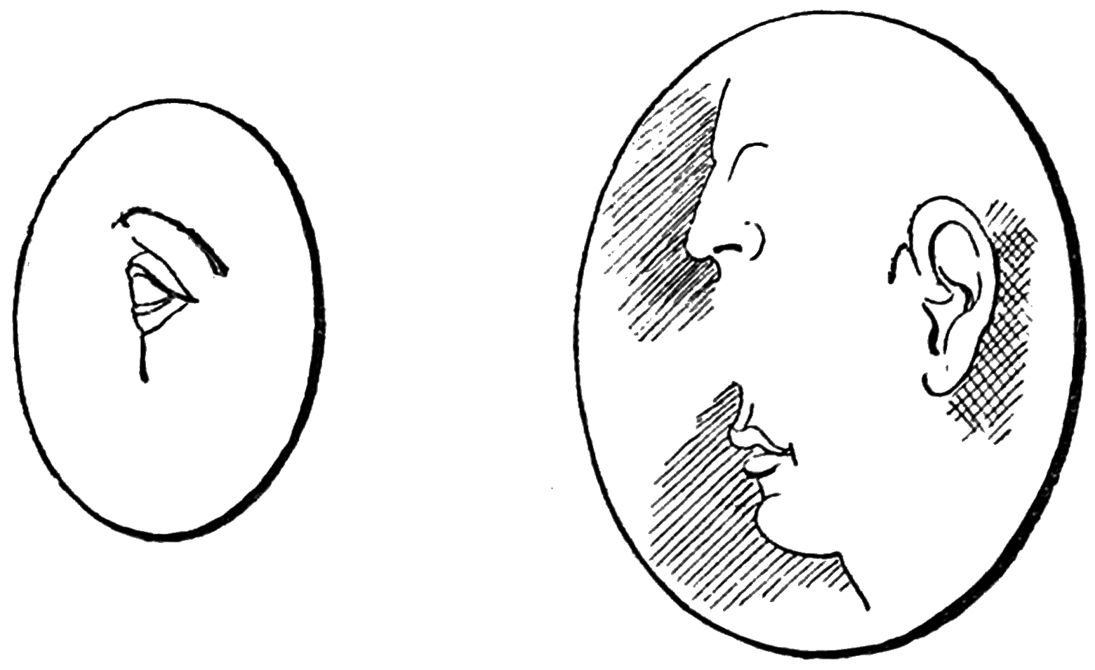 When sufficient progress has been made to justify attempting to cut a face, the learner should begin with separate features—the ear, the mouth, the nose, or the eye, as in the following sketches:—