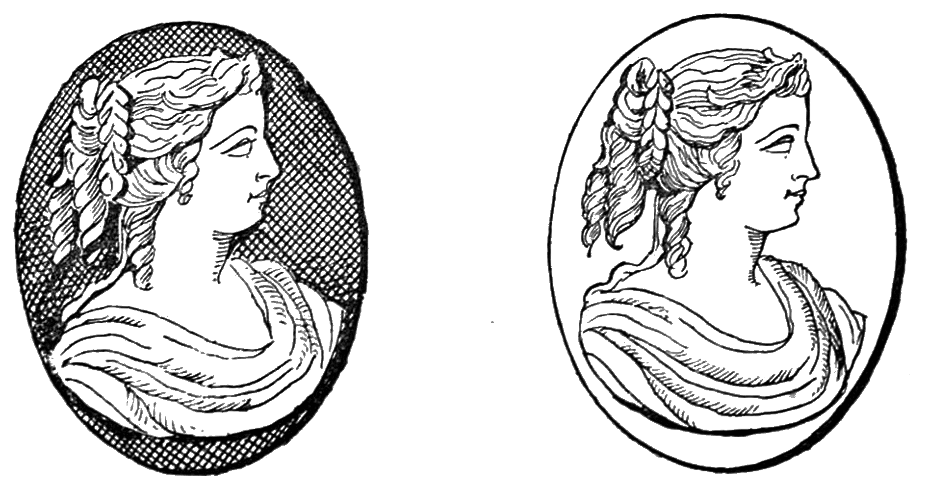 There were two principal causes for the decline of fashion in the wearing of Cameos in England. The first arose from paucity of designs; and the second from the bad workmanship engendered by overwhelming orders being thrust upon a market in which only a limited number of operatives were engaged. With regard to the first cause, modern Cameo-cutters found no other models than those which had been handed down from the times of the ancient workers in gems. The cutters were copyists merely, not true artists, and45 modern taste was not satisfied with the representation of classic deities, however daintily wrought. There was no variety in the pose of figure, and the minutest detail was settled one or two thousand years before. Thus Apollo, Diana, Jupiter, Mercury, Sappho, and Venus were represented in precisely the same manner they had been a thousand times before, and the Cameo worn by a noble lady only differed in the quality of execution from that worn by a greengrocer’s daughter.