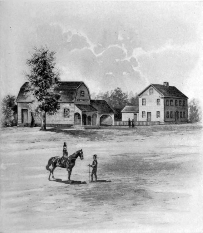 The meal was provided. The officers partook of it, and ordered their horses, and were waiting for them when the people of the place came into the house to pay their respects to Washington. He stood in the simple room, tall and commanding, with the stately Knox beside him.