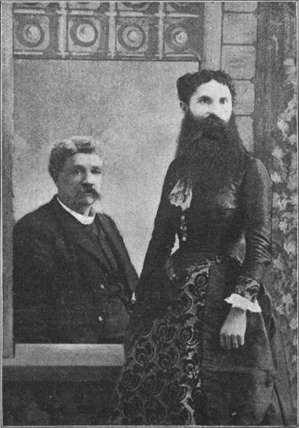 die den Vorzug hat, die Einzige mit grauem Barte zu sein, ist im Jahre 1832 in Lincoln in Nord-Amerika als Tochter kleiner Bürgersleute geboren. Da sich schon in ihrer frühesten Jugend die Spuren eines Bartes bei ihr zeigten,[S. 67] so barbierte sie sich selbst heimlich, um Niemanden in ihr »Geheimniss« einweihen zu müssen, als sie aber in ihrem achtundzwanzigsten Lebensjahre beide Eltern verlor und ganz mittellos war, da entschloss sie sich, ihren Bart wachsen und sich als »Bartdame« sehen zu lassen. Sie trat im Jahre 1862 zum ersten Male öffentlich auf, und da in jener Zeit nur wenig Abnormitäten bekannt waren, so hatte sie colossalen Erfolg.