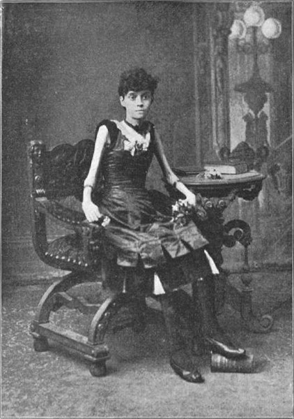 Wo die Frau geboren ist, ist unbekannt. Seit etwa 1880 ist sie mit ihrer Mutter, die ebenso missgestaltet ist wie die Tochter, zusammen in ganz Amerika ausgestellt worden, und Beide waren stets gesuchte Schau-Objecte.