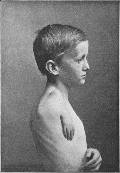 In der Bude aber hing das handschriftliche Gutachten eines der bedeutendsten Aerzte jener Zeit, das ich jedoch nicht mehr dem Wortlaute, sondern mir dem Sinne nach noch wiederzugeben vermag. Von dem Arzte nämlich über etwaige Unregelmässigkeiten im Verlaufe der Schwangerschaft befragt, habe die Mutter erklärt: Sie habe sich »versehen«. Ein Italiener sei eines Tages mit einem Brett voll Gipsfiguren auf dem Kopfe in den Hof gekommen und habe sie feilgeboten und darunter sei auch eine Figur ohne Arme gewesen. (Wahrscheinlich die armlose Venus von Milo, die im Louvre zu Paris aufgestellt ist, von der sich Gips-Nachbildungen in den natürlichen Dimensionen in fast allen Antiken-Sammlungen[S. iii] befinden und die früher auch in einer Höhe von ca. 18-20 Zoll von italienischen Gipsfiguren-Händlern mit Vorliebe geführt wurde.) Ueber diese Figur sei sie so furchtbar erschrocken, dass eiskalte Fieberschauer ihren ganzen Körper plötzlich durchschüttelt hätten, dass sie einer Ohnmacht nahe gewesen sei und dass sie sich des unangenehmen Eindruckes noch wochenlang nachher nicht habe erwehren können.