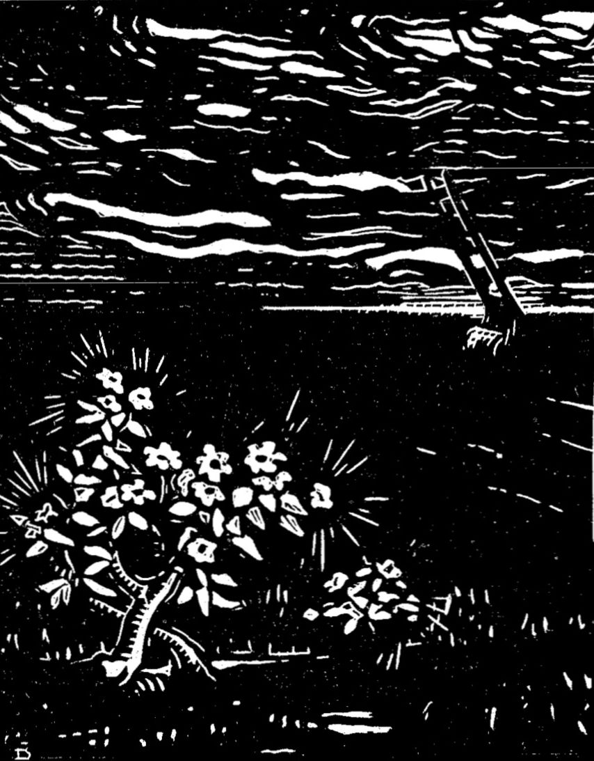 —... Et le soir, au couchant, comme un étang fleuri, la lumière liquide qui court, au ras des champs...