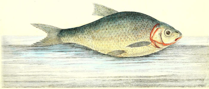 Is the English name of a very common fish, called by some authors the Rutilius and Rubiculus, and by others the Rubellio. It is a species of the Cyprinus, according to the new system of Artedi, and the Cyprinus Rutilius of Linnæus. It has been looked upon (though without much reason) remarkable for its liveliness and vivacity, from which comes the proverb “sound as a Roach.” In some parts of the world, this fish will only live in standing waters: it thrives very much in ponds and deep, still rivers: it is very remarkable for its progeny; a pond being sooner stocked with this fish than any other.