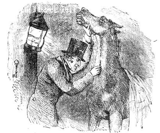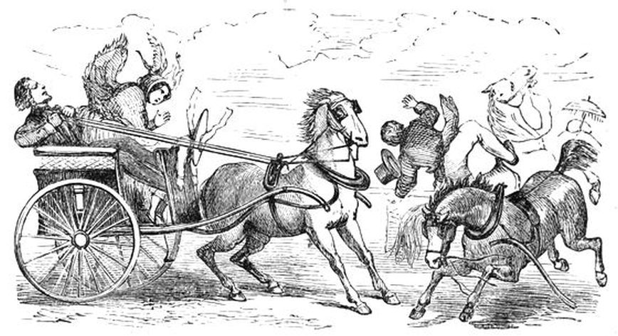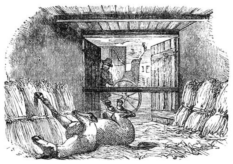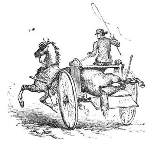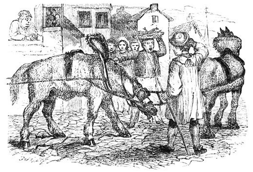 What a sacrifice of life and of money! Each horse cost the postmaster[11] £15 yearly; while the animals working for the queen, and drawing carriages not conspicuous for lightness, if bought originally for a like sum, would not cost more than £1 per annum. The contrast is certainly startling. But to perfect it, there remain to picture the sorry jade which was formerly harnessed to the public chaise, and the stately creature which, in all the delight of beauty, accompanies Royalty to the Parliament House.