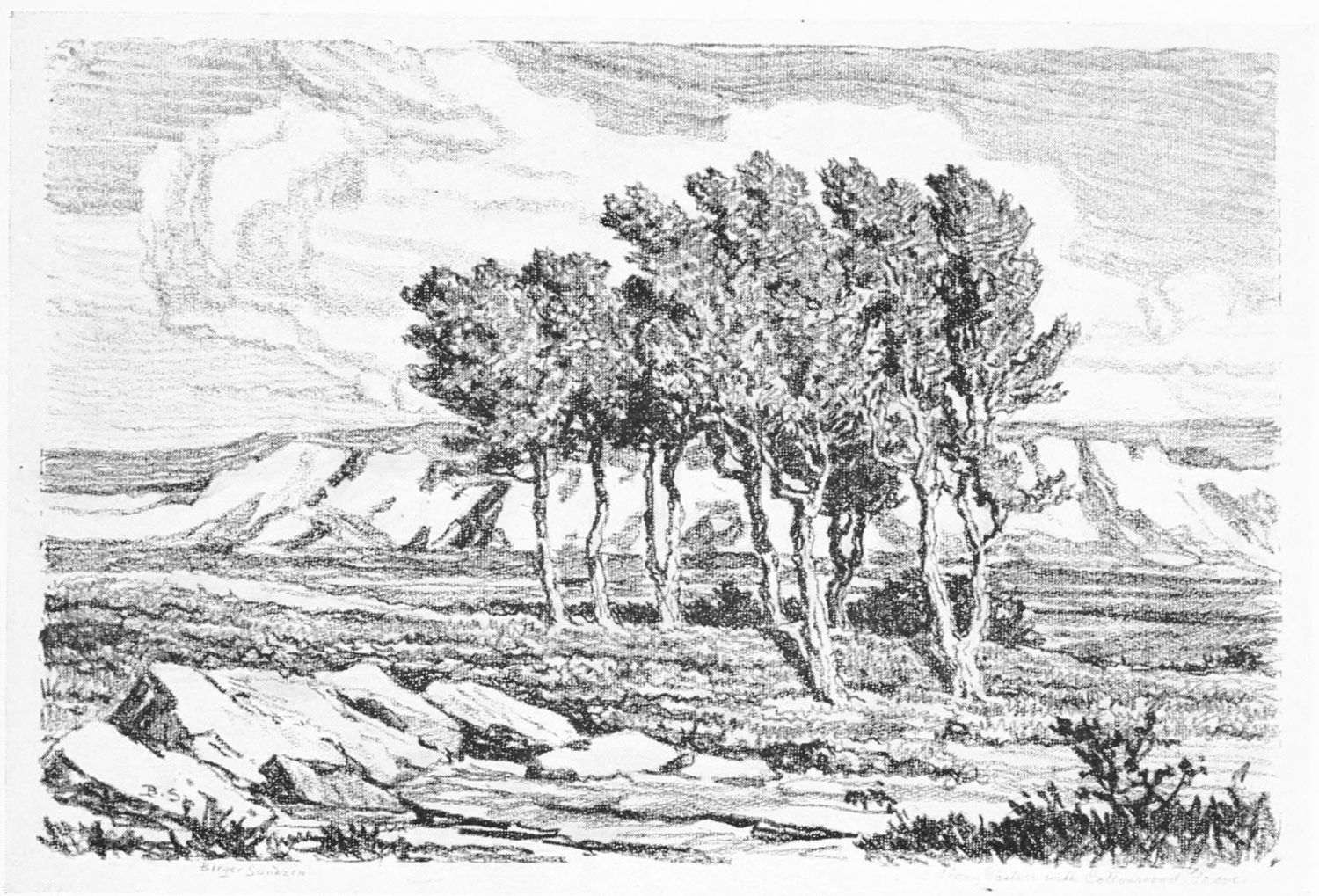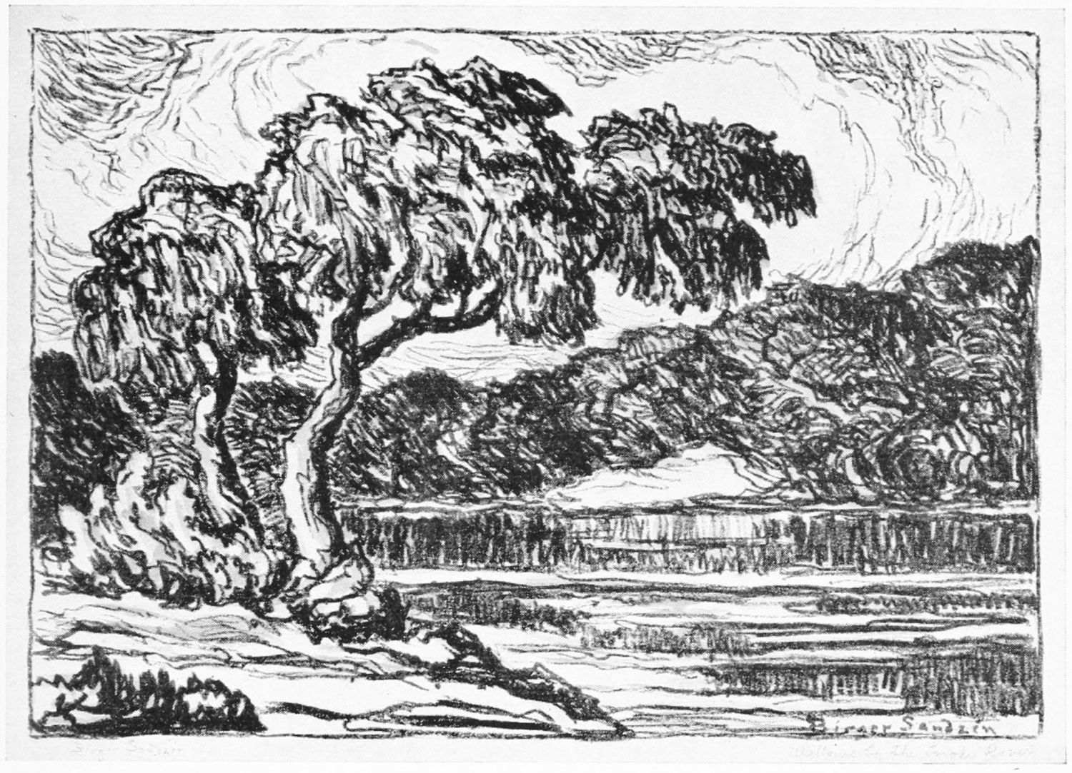 As a lithographer Mr. Sandzen has no rivals in this country, perhaps none anywhere. His love of the open is that of a poet, to whom the out-of-doors tells something of the immanence of God.