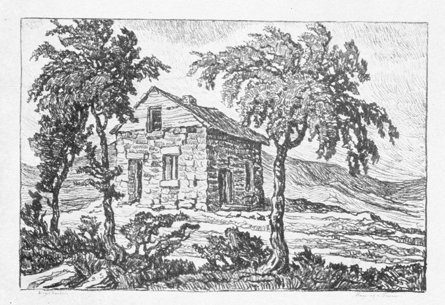 Sometimes his landscapes express the poignant loneliness that broods over the Kansas prairie. Oftener he sees the delightful homeliness of the farmsteads, changing the Smoky River Valley from a wilderness to a place of hearthstones and human happiness.