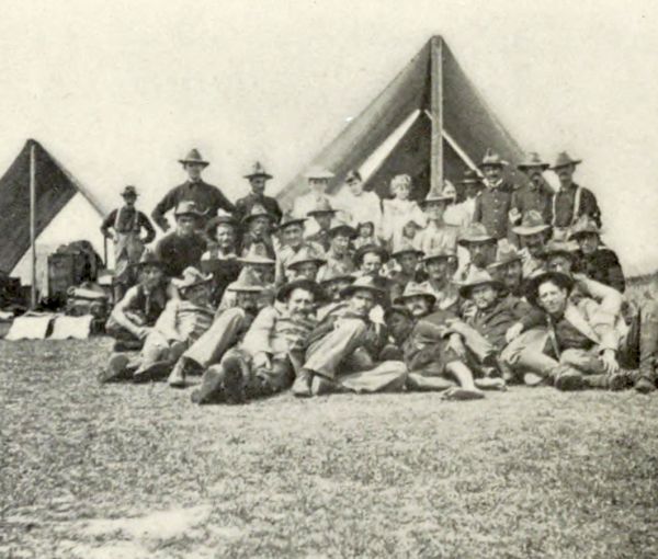 During the winter of 1897-8 particular attention was given to Regimental, Battalion and Company drills in extended order and when spring opened and the mutterings of war were heard, the Company had been drilled[Pg 11] quite thoroughly in battle exercises, and an enthusiasm had been instilled, so that every man was on his mettle. It was natural, then, that when the orders came the Company was enabled to turn out a larger percentage of National Guardsmen than any other Company in the regiment. The personnel of the entire body insured an honorable mention in the State annals. Our officers were capable and well liked; and the non-commissioned officers, that body of men in our armies which are the fighting unit, were a potent factor in our make up. How well these officers and subs did their duty the records of details, escorts, provost guards, etc., will show.