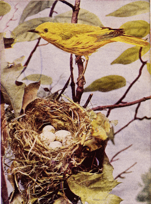 When the summer yellowbirds have three or four hungry mouths to feed, just watch at the open window behind the snowball-bush and "see what you see." Little green caterpillars make nourishing food for baby yellowbirds. The parents might be running up and down amid the green and white of the bush, just for effect of color, but they are not. Those little, soft, green biscuits are the objects of their ramble.