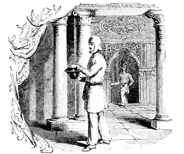The third day arrived, and the trembling Esther prepared to redeem her promise. She put on her royal apparel, the rich garments and glittering jewels whose splendour seemed a mockery of the fear and sorrow of her whom they adorned. And so Esther ventured into the presence of the despot, not armed with great natural courage, but leaning on that invisible Protector who can give strength to the weak and heroism to the fearful. Ahasuerus beheld his beauteous queen, and all his affection towards her revived: he held out his golden sceptre, and perceiving that no light motive could have induced her to brave the peril of death, “What wilt thou, Queen Esther?” he cried; “and what is thy request? It shall be given to thee to the half of the kingdom.” [Pg 33]