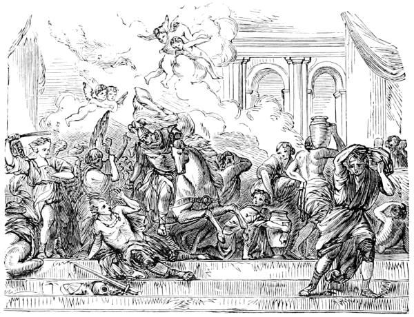 A fierce fight ensued between the Romans and the Jews. The people from the roofs of their houses threw down stones and darts on the troops, [Pg 173] who at length, weary of this inglorious street warfare, returned to their camp near the palace.