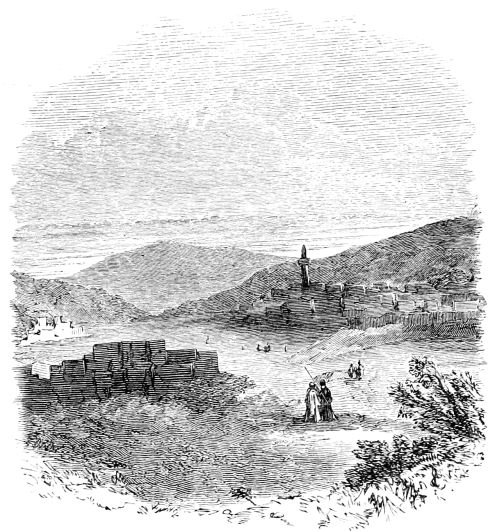On reaching Palestine the caravan repaired at once to Jerusalem, which was found in a state of ruin and desolation. Before the travellers separated to seek habitations for themselves, they raised a large sum by voluntary contributions towards the rebuilding of the temple. They then employed themselves in securing dwellings for their families; and at the ensuing feast of tabernacles again repaired to Jerusalem, where sacrifices were offered on an altar erected on the ruins of the temple. [Pg 18] After this the people applied themselves zealously to the necessary preparations for the restoration of that edifice. In a year from the departure from Babylon these preparations were sufficiently advanced to allow of the great work being commenced, and the foundations of the second temple were laid amidst the noise of trumpets, cymbals, and shouting! But many of the priests and aged men, whose hair had grown white during the captivity—those who had seen the temple of Solomon when it stood in its glory and beauty—wept with a loud voice at the mournful recollection of the past, 535 b.c.