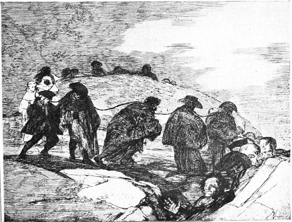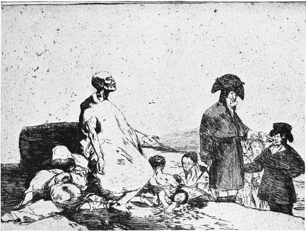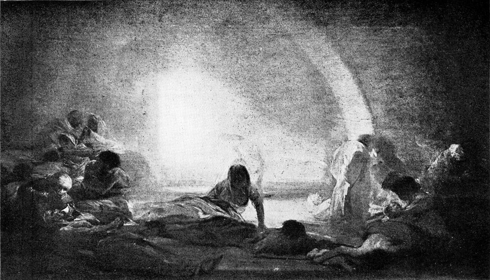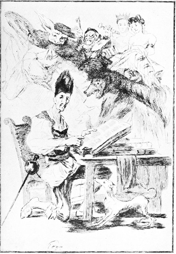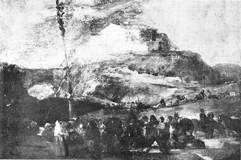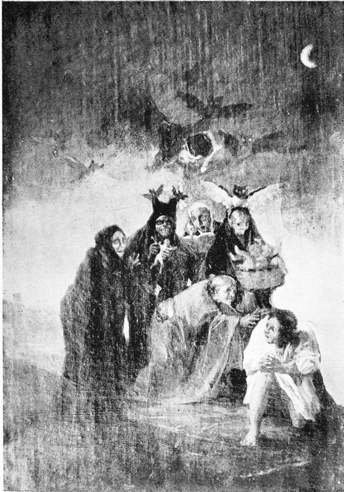 It is impossible to reproduce his colouring; but in the reproductions of his works the author has endeavoured to convey to the reader some idea of Goya’s boldness of style, his mastery of frightful shadows and mysterious lights, and his genius for expressing all terrible emotions.