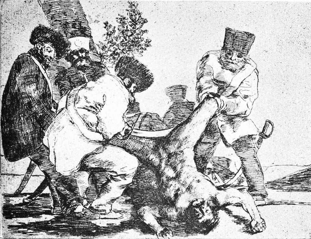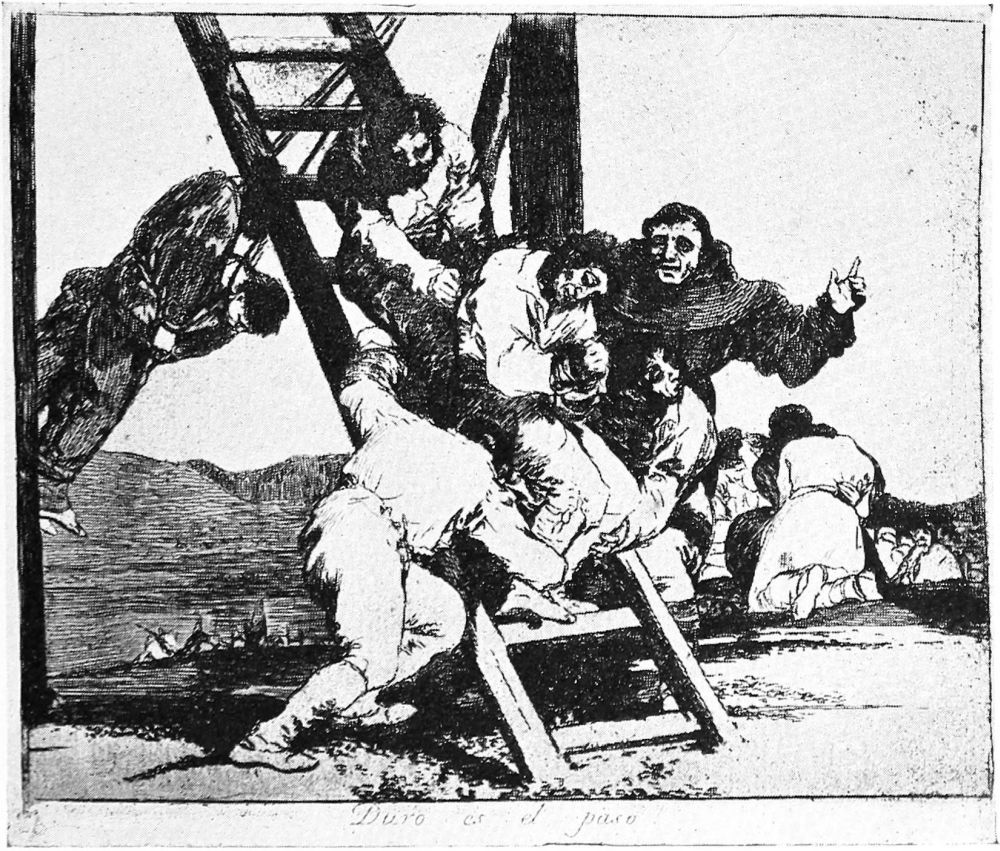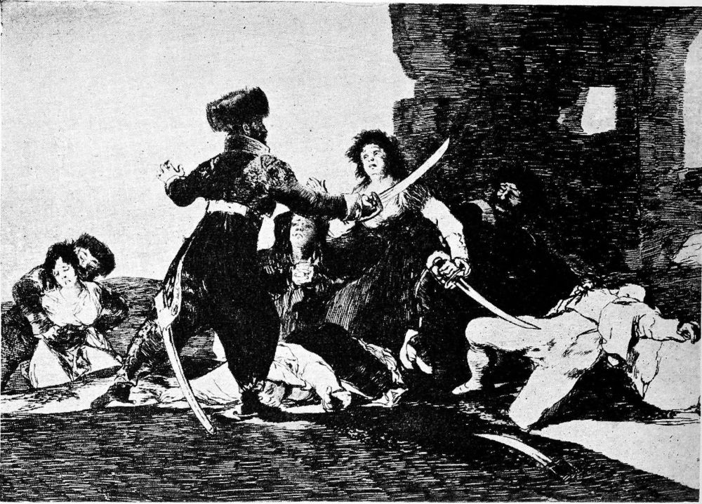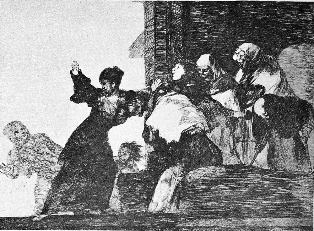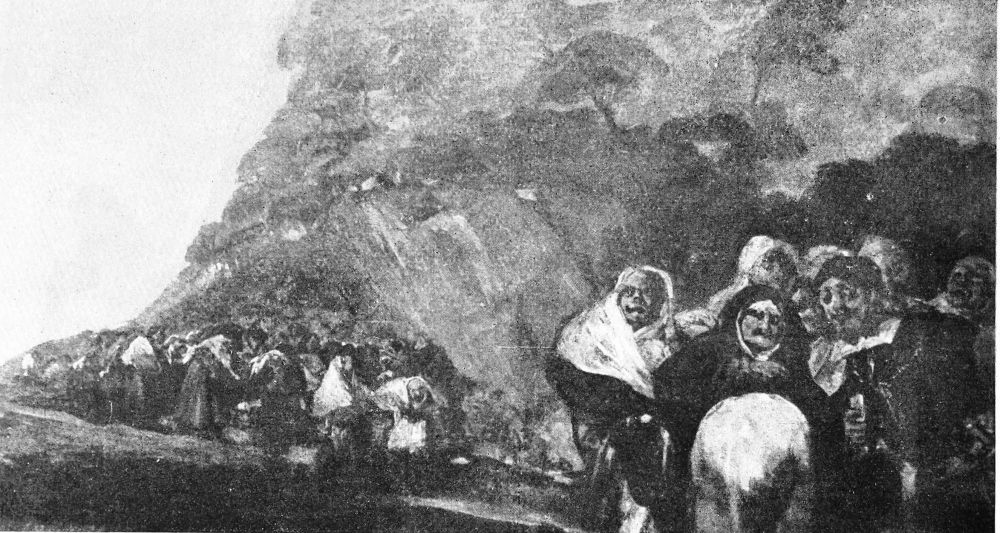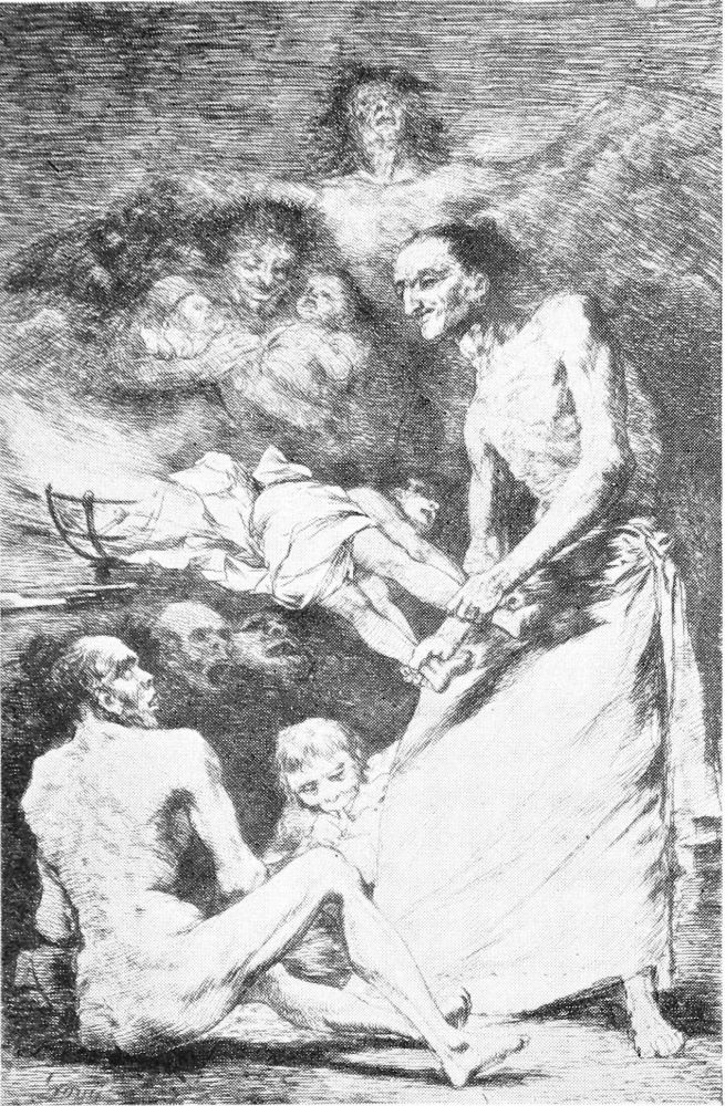 It is impossible to reproduce his colouring; but in the reproductions of his works the author has endeavoured to convey to the reader some idea of Goya’s boldness of style, his mastery of frightful shadows and mysterious lights, and his genius for expressing all terrible emotions.