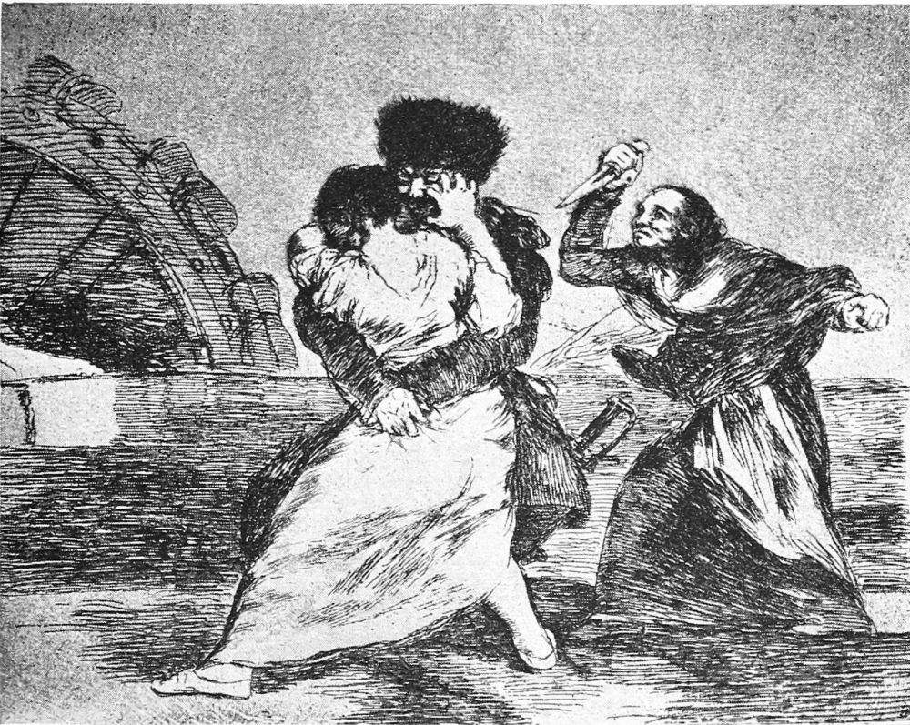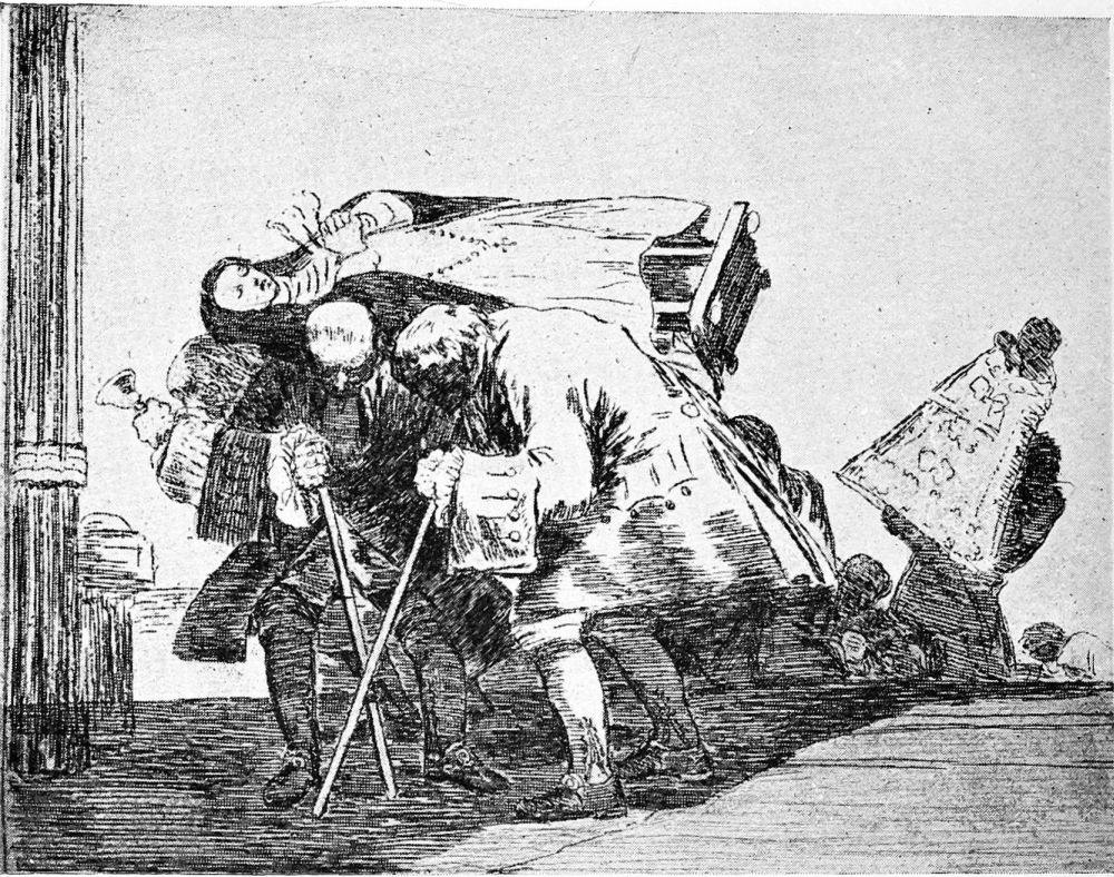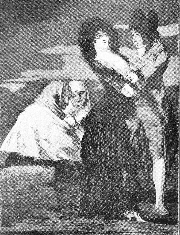 Goya’s art would appear to be the reflection of his life. His youth was disordered and tempestuous; in the height of his success he accepted favours, but he was too conscientious an artist to repay the adulation of the world by flattering it in his canvases; and he published his disillusions in the biting satire of his Caprices and Proverbs.
