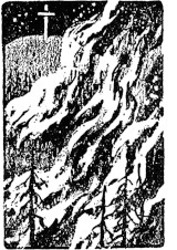 The high outline of a sand ridge loomed suddenly before them. It was an elevation which had built itself up year after year, by reason of its resistant creosote bush and other tenacious growth. It was halting the rushing flood of sand, banking it back against the terrific current. They were swept toward it. Its base seemed swelling, crawling to meet them, and its outline was mounting higher and higher. They were driven up with the piling earth. The thundering volume frayed at them, pressed the breath from their lungs, tumbled them, carried them with it. A mountain was being formed. They shot across its summit and dropped as though from a cloud. They slid and rolled and lodged under the lee of the ridge.