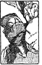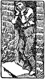 His face bleeding, his hands shaking, the ragged, short man stepped backward from the creeping pile and laughed. The sound made the other jump and whirl around on him. It was a sharp, strained cackle—a mad expression of release from the immediate clutches of death.