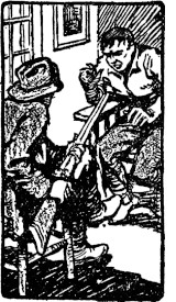 "Yer scared yer goin' t' croak, ain'tcha?" he snarled. "Yuh wanna see me croak first, don'tcha? Well, don'tcha try t' start nothin' with me! I'm uh live man yet, by God!"