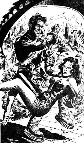 On the fourth night of his visit to Athens, Yancey persuaded Selo to meet him after the restaurant closed. When she slipped furtively out of the shadows to seek haven in his arms he knew that he could not return to the humidi-hut alone. With this woman to care for him he could search for the quollas with new eagerness. She would put an end to the terrible loneliness.