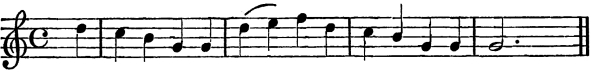 “Folk-song,” or “people’s song,” may be understood to imply, in its broadest sense, as Volkslied does to the German, a song and its music which is generally approved by the bulk of the people. Thus any current popular drawing-room song, or the latest music-hall production, would naturally hold this meaning, though it would not come into line with the other conceptions of folk-song, and probably not altogether satisfy the German ideal. Then, what may fitly be called “national” songs have a strong claim upon the word. “God save the King,” “Home sweet Home,” [Pg 10] “Tom Bowling,” “Heart of Oak,” and countless others that form our national store of song and melody could under this meaning be called folk-songs, and this might come closer to the German idea of a Volkslied.