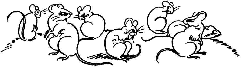 Da sagte sich das Mäuschen ruhig: Nun gehe ich zu den grauen Mäusen. Verachtet bin ich so wie so! Dort kann ich mich wenigstens amüsieren. Es ging. Die Familie sagte: Unser Mäuschen ist tot! Und dann seufzte sie. Wenn jemand von ihm reden wollte, winkten sie mit den Pfoten und sagten: Ach ja!