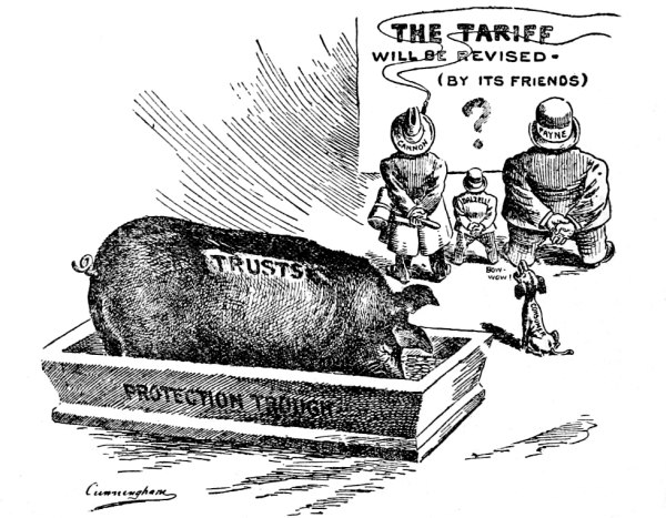 In 1896, every chance was in his favor; he was young, handsome, magnetic, eloquent, without a stain on his record. In the general enthusiasm aroused by his “crown-of-thorns, cross-of-gold” speech, people did not give heed to the craftiness and selfishness of the Bland delegate who used Bland’s name as a stalking horse to get the nomination for himself. For twenty years Richard P. Bland had labored for Bi-metallism. He had won the fight by sheer bulldog pluck. The Bland-Allison act of 1878 was a Bland triumph. The Sherman law of 1890 was a Bland victory, for Sherman himself said it must be passed to head off a free-coinage act. When the Congress of 1892 convened, the Bland forces had an overwhelming majority. Why then could we not make a law restoring the white metal to its constitutional place as the equal of gold? Because, in the contest for the Speakership, the Northern Congressmen got control of the Committees as an exchange for the office of Speaker.