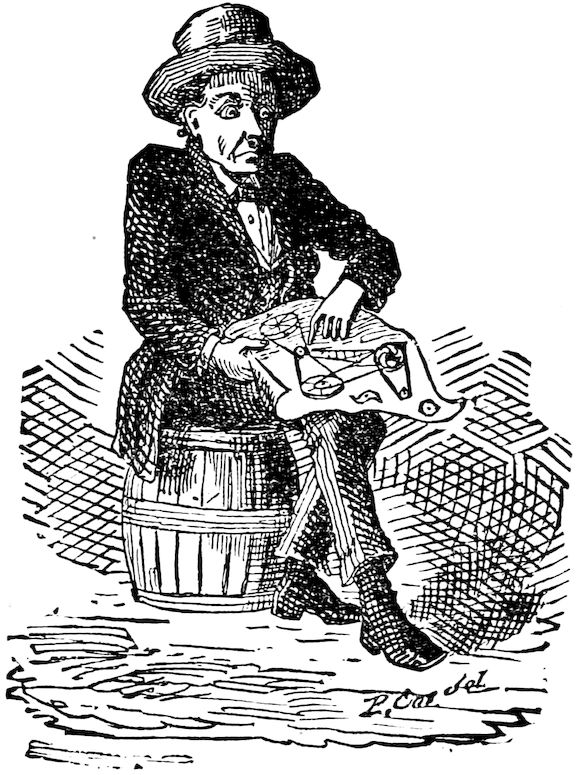 Christmas Eve! I sit idly by my window, listening to the rapid patter of the rain upon the shingles and the wild whistle of the wind as it plays around the gables, or draws weird music from the telegraph wires stretched between the house tops, and upon which dangles the ghost of many a schoolboy’s kite. Christmas Eve! and I am not yet invited out to dinner! what can this mean? Am I then left to wither for want of attention, like some poor shrub plucked from a garden and planted in a graveyard? Well, let it be so. Alone though 514I am, I nevertheless enjoy myself hugely, and it requires considerable to enliven me now. There was a time when I could be moved to mirth by very little. The desperate efforts of a one-legged grasshopper describing circles while endeavoring to leap straight ahead, would amuse me for hours together. But it is not so now; I turn from such scenes to bury my eyes in the pages of profound works, and it is meet and proper I should.