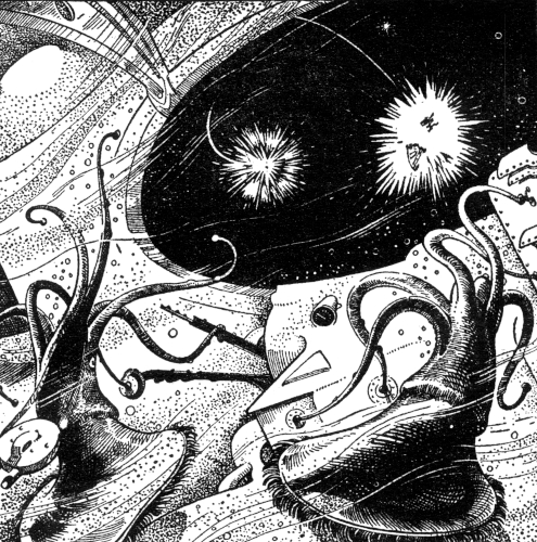 Ronaro's tentacles fairly boiled the water as he made the necessary adjustments. A thousand miles behind them, the closest lifeboat from their stricken vessel glowed briefly around its equator and fell apart into two halves that gradually spread apart.