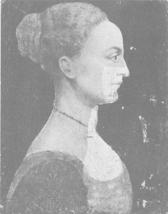 ABOVE: A forgery (partly cleaned for examination) of a fifteenth-century Florentine portrait, compared with a genuine example (BELOW). The forgery is on an old panel, but was finally proved false by the presence of titanium white, a twentieth-century pigment.