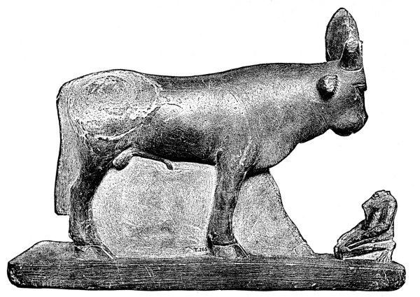 [82] One mode of consulting the sacred bull was by offering him food. Germanicus is said to have thus consulted him; the Apis refused to eat, and this unfavourable reception was considered to have foreboded his untimely fate.