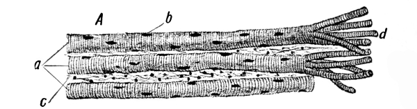 Closely allied to the areolar is the fibrous tissue, in which the white fibers lie close together and run for the most part in one direction only. This is found in ligaments, joints and tendons, as also in such fibrous protective membranes as the periosteum, dura mater, the fasciæ of muscles, etc. Fibrous tissue is silvery white in appearance and is very strong and tough, yet pliant. It is not extensile.