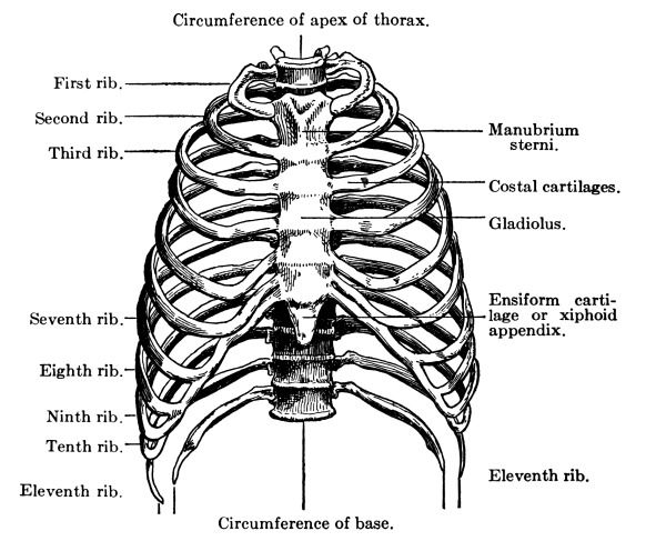 The Sternum, 97—The Ribs, 97—Costal Cartilages, 98—Muscles of the Chest, 98—Diaphragm, 98—Mammary Glands, 100. |