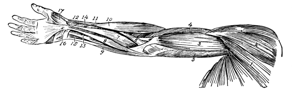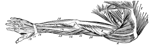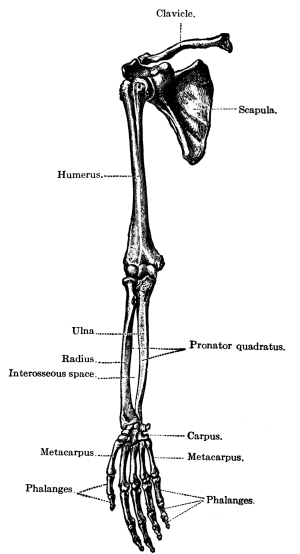 The Shoulder Girdle, 171—The Clavicle, 171—The Scapula, 173—Shoulder Muscles, 174—The Humerus, 175—Upper Arm Muscles, 176—The Ulna, 177—The Radius, 178—The Wrist, 180—The Hand, 181—Meta-carpals, 181—Phalanges, 181—Muscles of the Forearm, 182—Muscles of the Hand, 184—Joints of the Upper Extremity, 185—Blood Supply of the Upper Extremity, 185—Nerves of the Upper Extremity, 186. |