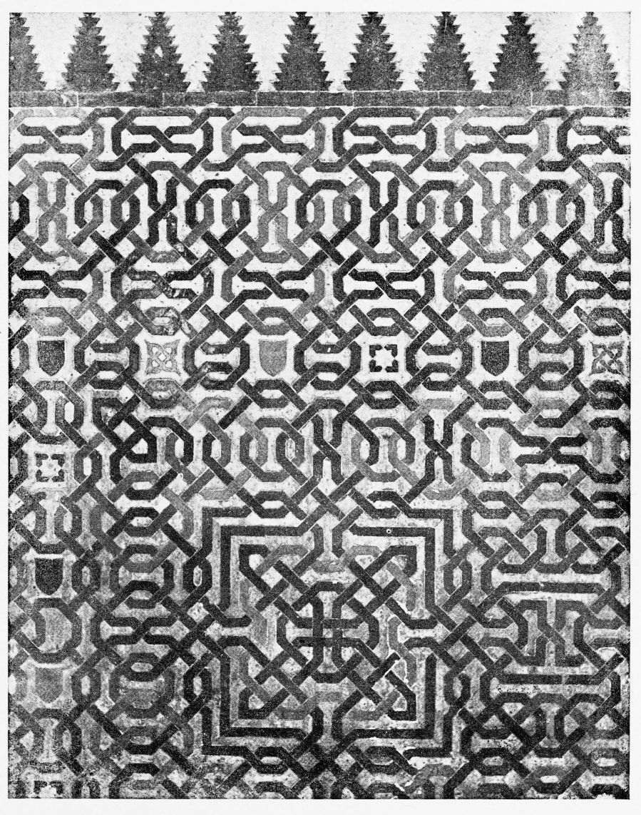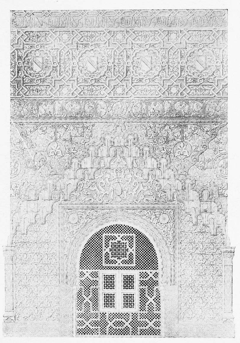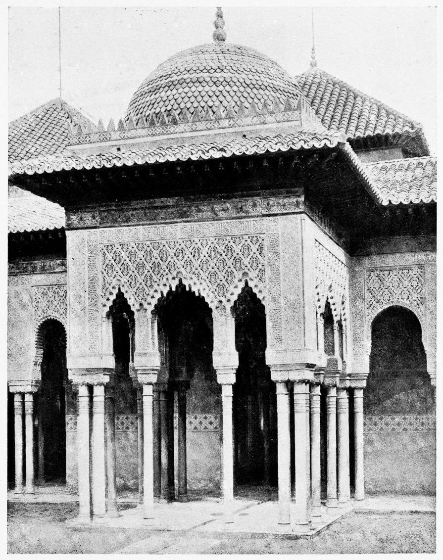 Don Mariano Contreras, Conservator of the Alhambra, the son of the gifted Raphaël Contreras, who devoted thirty-seven years of his life to the restoration of the Palace—gave me the benefit of his knowledge of this unique treasure-house of art; and I have also laid under contribution the beautiful plates of Owen Jones, who disposed of a Welsh inheritance in order to produce his great work on the Plans, Elevations, Sections and Details of the Alhambra. Jones’s Grammar of Ornament, which has been described as “beautiful enough to be the horn-book of the Angels,” also contains the result of his researches in the Alhambra, which occupied him for the greater part of eleven years. A selection of these illustrations is here rescued from the obscurity of public libraries and the inaccessible recesses of private collections. The inclusion of John F. Lewis’s drawings, and the reproduction of a series of pictures by James C. Murphy, who spent seven years in the study of the artistic marvels of the Alhambra, I do not feel called upon to defend. The photographs, several of which were placed at my disposal by Don Rafaël Garzón, represent the buildings as they appear to-day; the drawings were made before the Palace was damaged by the disastrous fire of September, 1890.{ix}