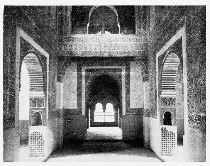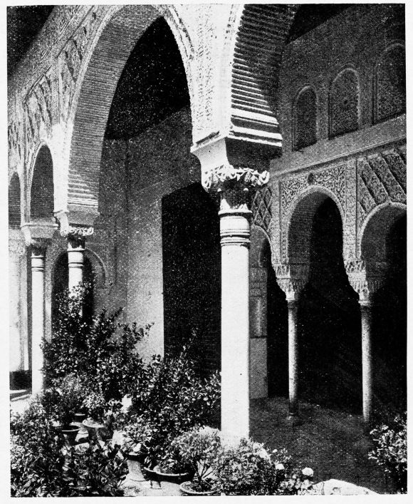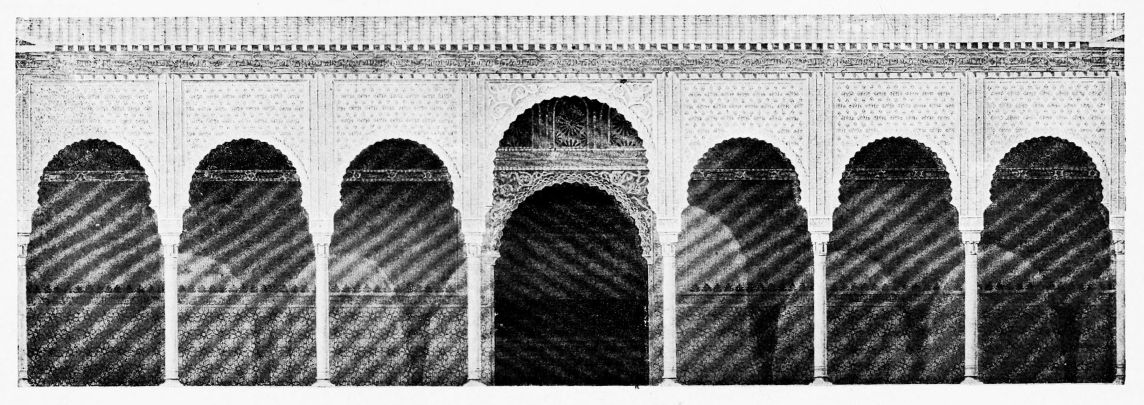 For the historical portions of the description contained in the letterpress I have levied tribute on a variety of authors. The History of the Mohammedan Dynasties in Spain, by the learned Spanish Orientalist, Don Pascual de Gayángos; Raphaël Contreras’ Etude Descriptive des Monuments Arabes; Richard Ford’s reverent appreciations; Dr. R. Dozy’s history; Mr. Stanley Lane-Poole’s The Moors in Spain; Washington Irving’s fascinating writings; and The Alhambra Album, presented by Prince Dolgorouki in 1829, containing the autographs, poems and thoughts of succeeding generations of visitors to Granada, these and many others have been drawn upon in the following pages.