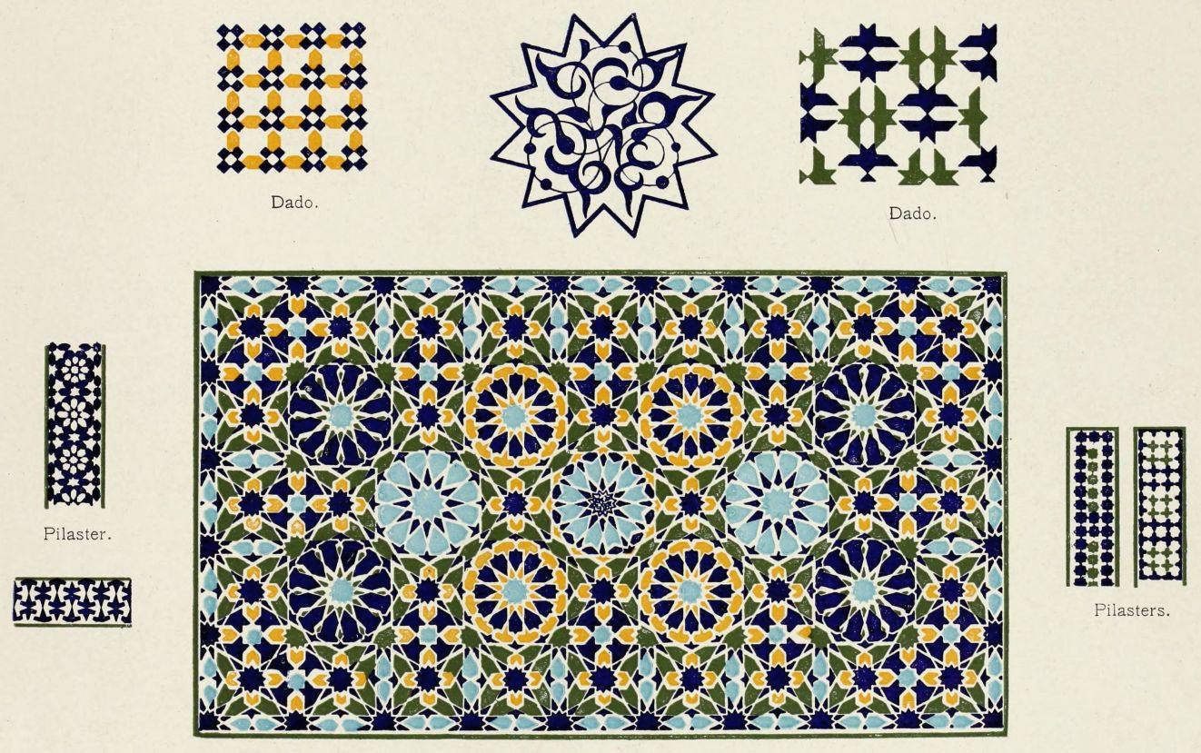 “It is really impossible to do justice, in a journal of this kind, to the sumptuous volume (its price is two guineas and the book is worth it) before us. To do that—to give the reader any adequate notion of the beauty of the illustrations with which it is enriched—we should have to summon all the resources of the colour printer’s art to our assistance, in order to reproduce them in a special edition de luxe of the “P.M.G.” Inasmuch as that is not to be done, we must ask the reader to take it on trust from us that the illustrations of Moorish decorative art are something quite out of the common.... The making of this book must, surely, have been a labour of love; and love’s labour has certainly not been lost.”—Pall Mall Gazette.