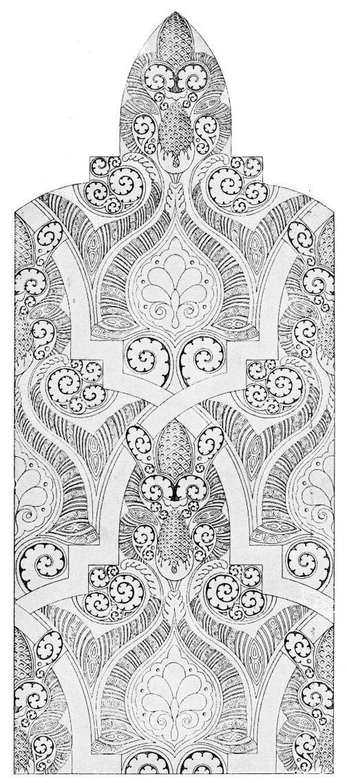 “Just when the new Spanish marriage is attracting attention to a country of departed greatness, Mr. Calvert’s volume appears with the courtliest of dedications to His Majesty Alfonso XIII. In many respects this handsome volume is a timely wedding present for his Spanish Majesty, as it is a gorgeous literary tribute to the beauty of the jewels in the Spanish Crown—Cordova, Seville, and Toledo. Mr. Calvert is an enthusiast and an antiquary.... The author himself allows us to regard his volume in the main as a picture book, and we can imagine that many a designer who eschews the noble simplicity of fresh forms and the Christian aspiration of Gothic art will turn with profit to the wealth of plates here bestowed. The coloured plates are gorgeous rather than delicate; for that we{484} must thank the Moors, and marvel at the inventiveness of their artist geometricians.”—Antiquary.