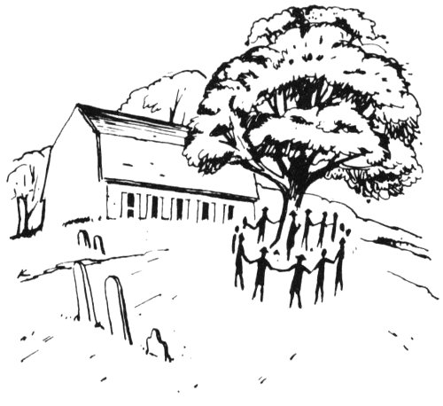 The first log Pequea Church stood near a large white oak tree, which is still standing and marks the spot where Geo. Whitefield preached.