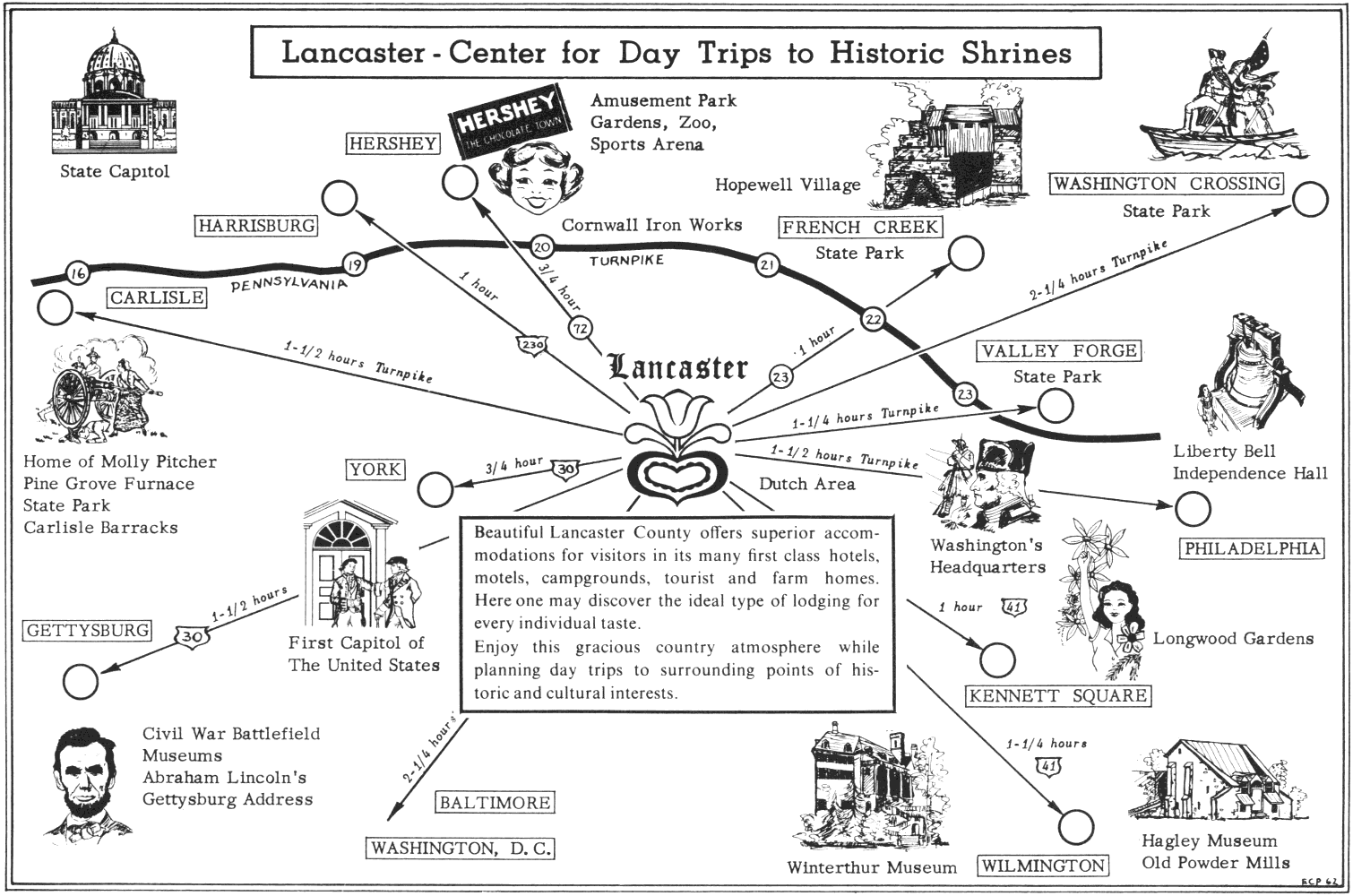 This Official Guide-Book of the Pennsylvania Dutch Tourist Bureau has been prepared solely for the purpose of making the tourist’s visit to Lancaster County the interesting and enjoyable experience it should be.