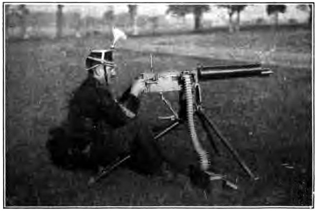 The British infantryman is usually provided with 115, and each machine gun with 3,500 rounds of ammunition. Each battalion is, in addition, provided with 8 pack animals, each carrying two ammunition chests containing 4,400 cartridges (77 kg.), and with 8 ammunition wagons.
